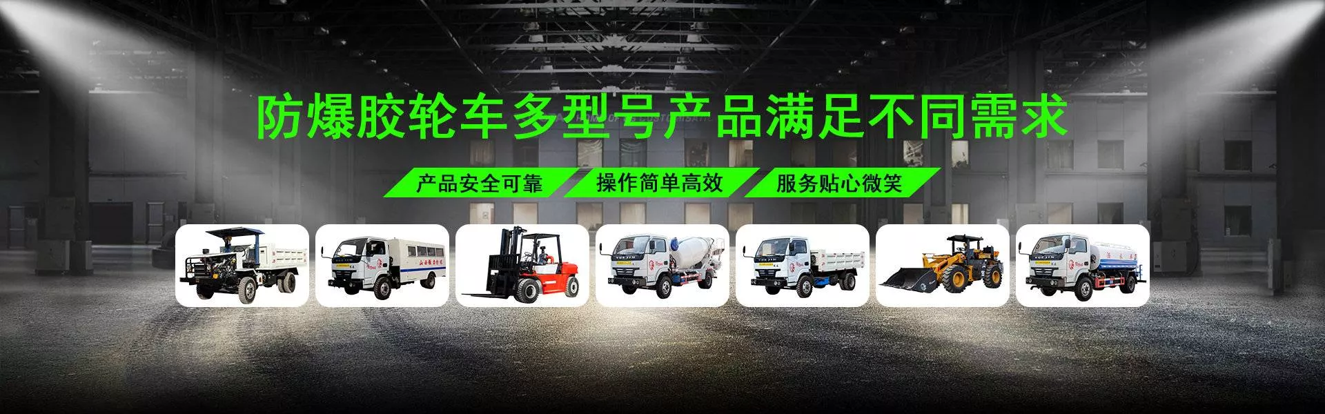 专注生产矿用防爆车(如胶轮车、拉人车、装载机、指挥车、叉车、洒水车、柴油机等8类系列整车产品)